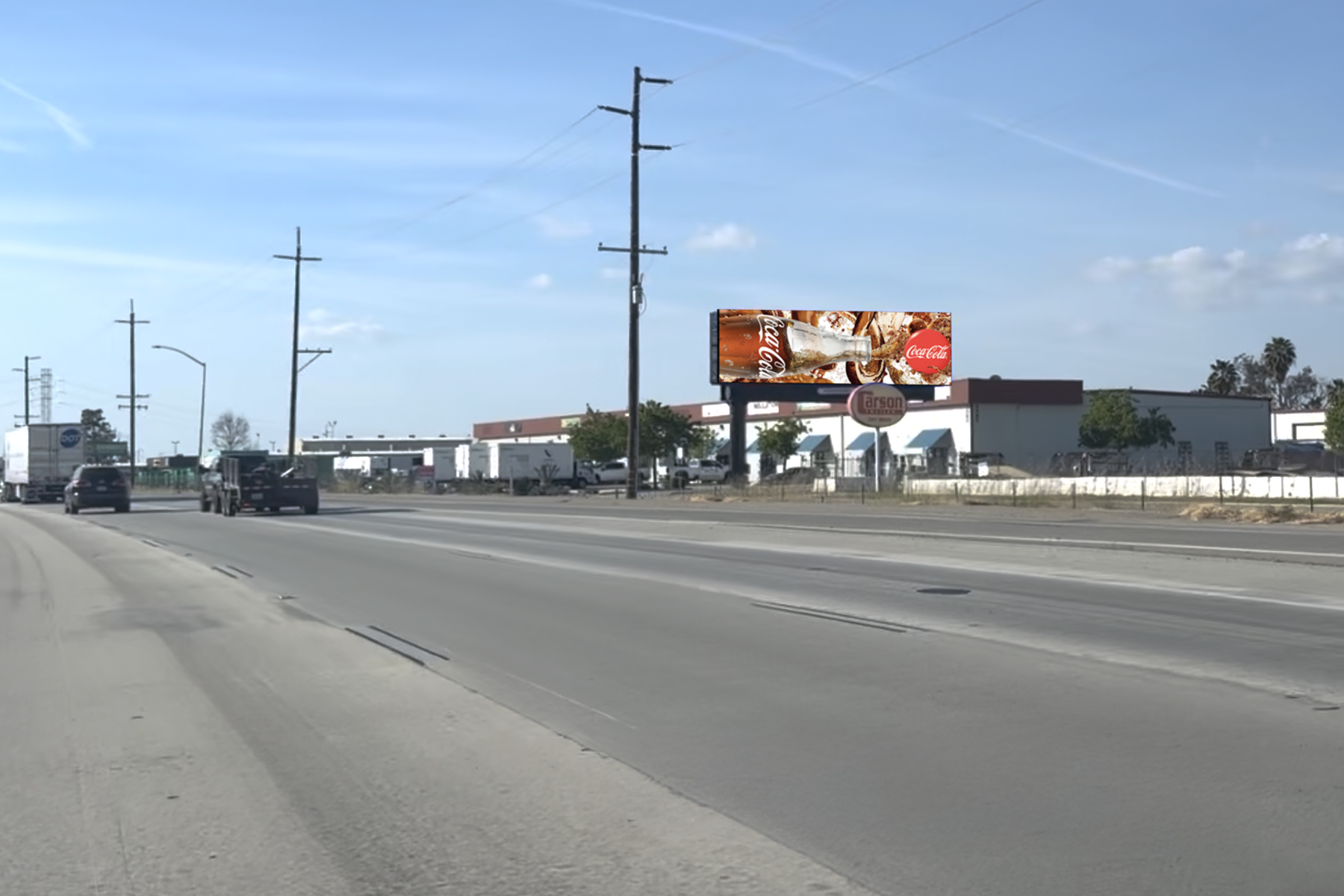 This digital billboard commands one of Bakersfield’s most valuable west-side corridors. Positioned to directly face vehicles traveling along the Barstow-Bakersfield Highway, this unit captures motorists moving westbound toward central Bakersfield, as well as steady local commuter traffic flowing through the Brundage commercial district. Its placement makes it a powerful visibility point for brands looking to reach audiences before they enter key retail, residential, and industrial zones. With clean lines, a strong elevated angle, and a bright, high-resolution LED face, the display holds attention day or night—ideal for local businesses, regional advertisers, event marketing, and large-format brand storytelling.